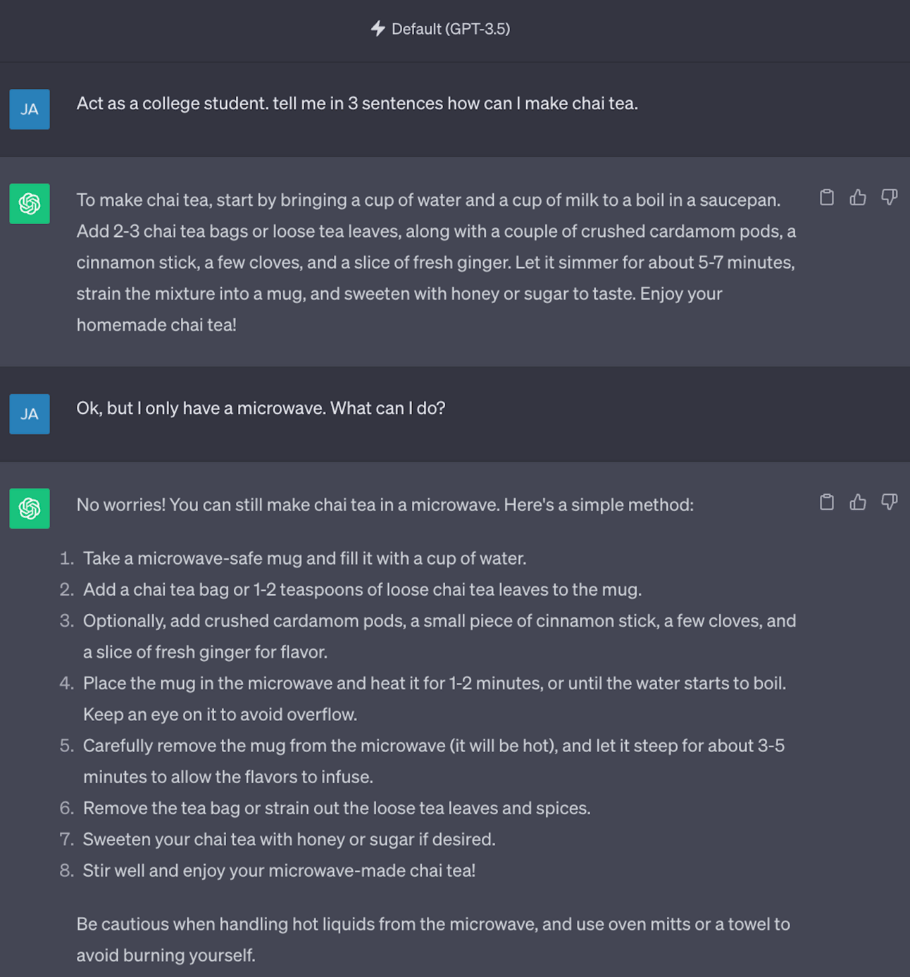 Set the scene - Turn your AI assistant into your dream teammate through roleplay. Try out “Act as a school teacher to…”