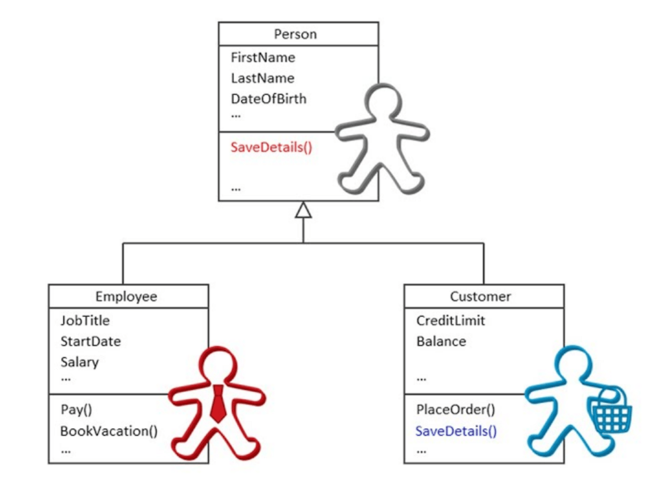Inheritance: Allows classes to inherit attributes and methods from other classes. This promotes code reuse and establishes a hierarchical relationship between the parent (superclass) and the child (subclass). The subclass inherits all the non-private properties and methods of the superclass, and it can also have its own additional properties and methods.